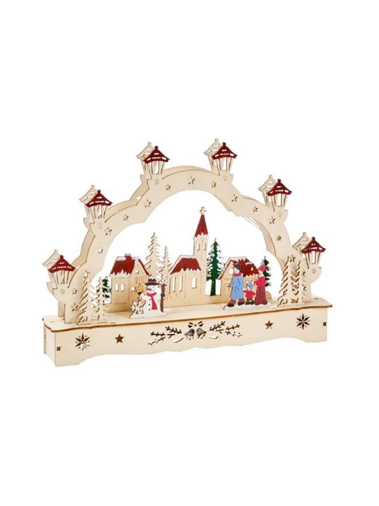 Create a cozy winter scene with our 28cm InLit Wooden Festive Village. The charming wooden design and warm LED lights will bring a festive touch to any room. Perfect for adding a festive touch to your seasonal decor.